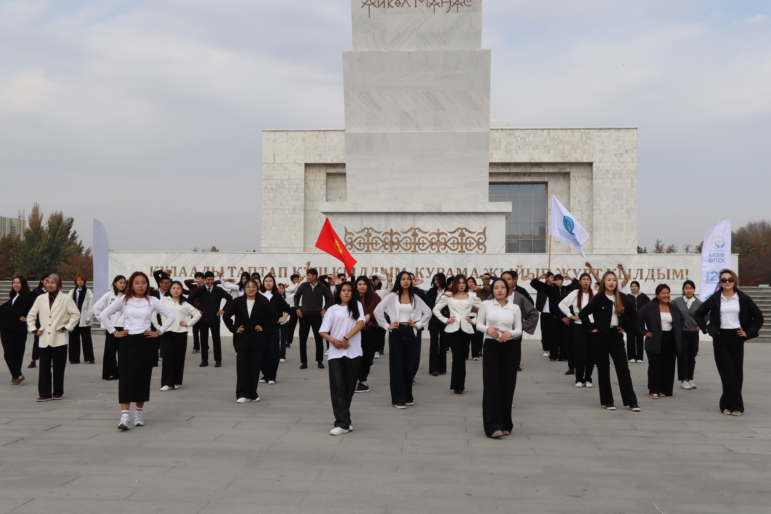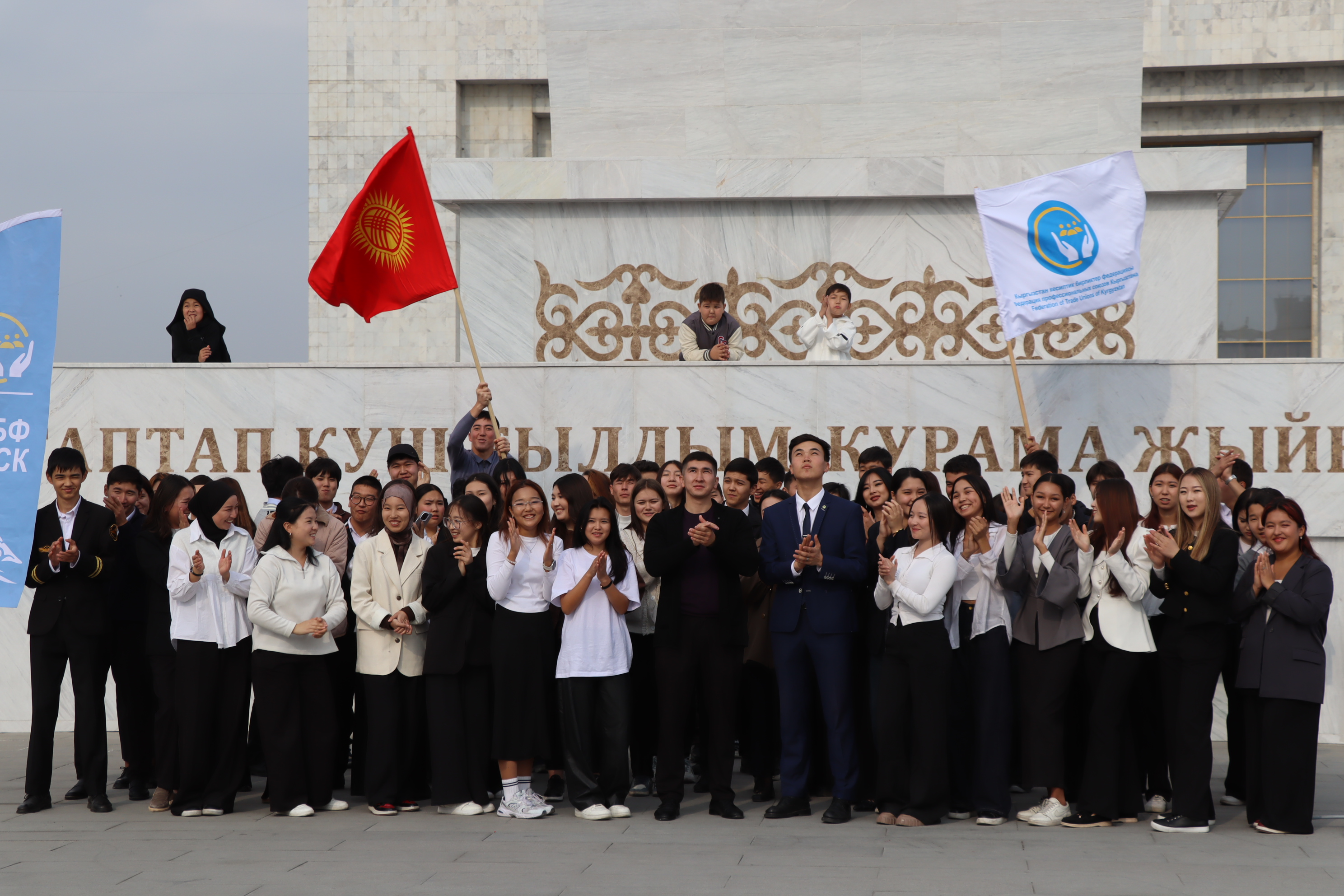 Молодежный совет Федерации профессиональных союзов Кыргызстана (ФПСК) совместно с волонтерами ФПСК провели масштабный флешмоб, приуроченный к 120-летию профсоюзного движения в стране.